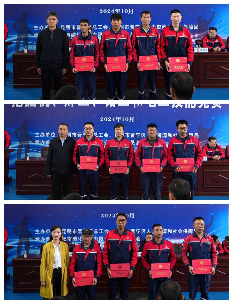 經(jīng)過一天的激烈比拼,公司昆陽磷礦職工郭林慶、檢維修中心職工沈君縣和楊強、尖山磷礦職工王正山以優(yōu)異的實操成績分別奪得挖掘機、焊工、電工、鉗工技能競賽冠軍,并被授予2024年晉寧區(qū)挖掘機、焊工、電工、鉗工技能競賽“技術狀元”榮譽稱號。